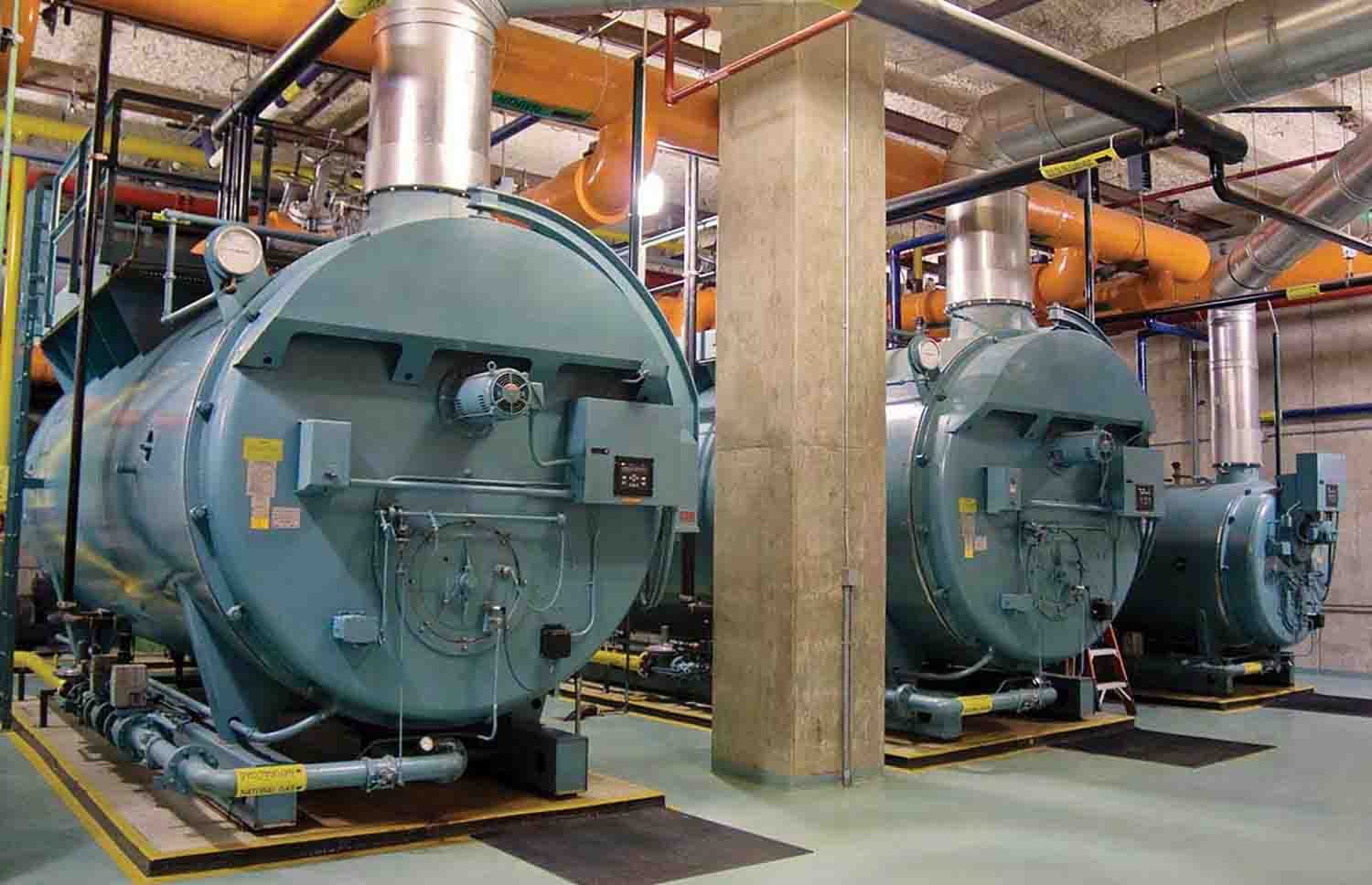 A boiler is an enclosed vessel in which a fluid such as water is heated to produce steam or the vaporized form of a liquid.